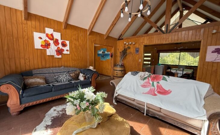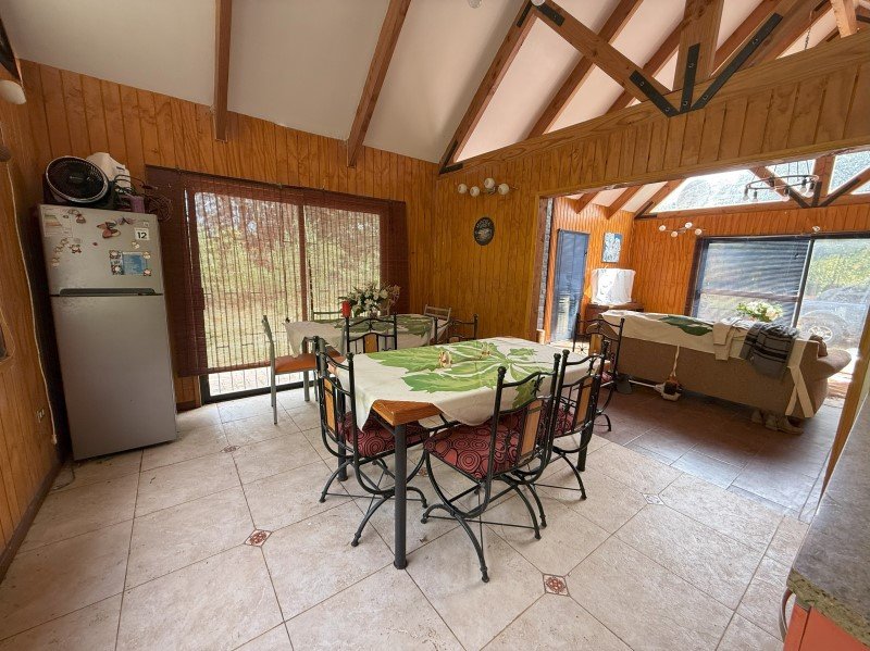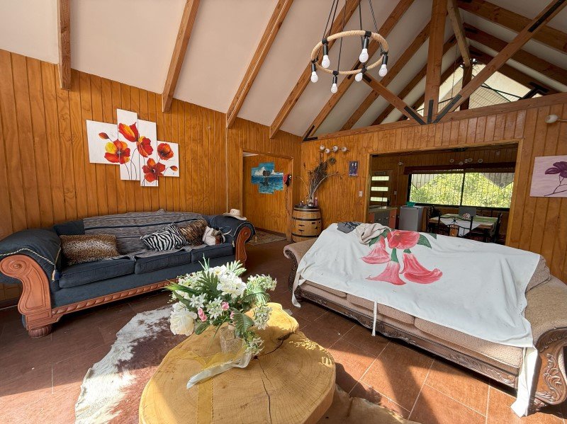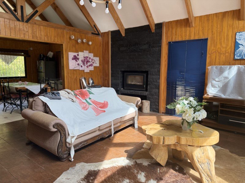 La sala de estar es el corazón de la casa, equipada con dos chimeneas, es un espacio perfecto para el esparcimiento familiar y social, adornado con un elegante piso de porcelanato y flotante que añade un toque de sofisticación. Además, las ventanas de termo panel no solo permiten la entrada de luz natural, sino que también garantizan un excelente aislamiento térmico, creando un ambiente cálido y confortable en cualquier época del año.